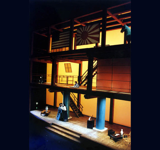 > 2A Butterfly, foto di scena con fondale retroilluminato dietro a scena costruita, scene Aldo Rossi, foto Primo Gnani