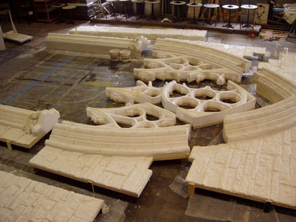 > 26b. Elemento scenico scolpito nel polistirolo e incollato su multistrato
