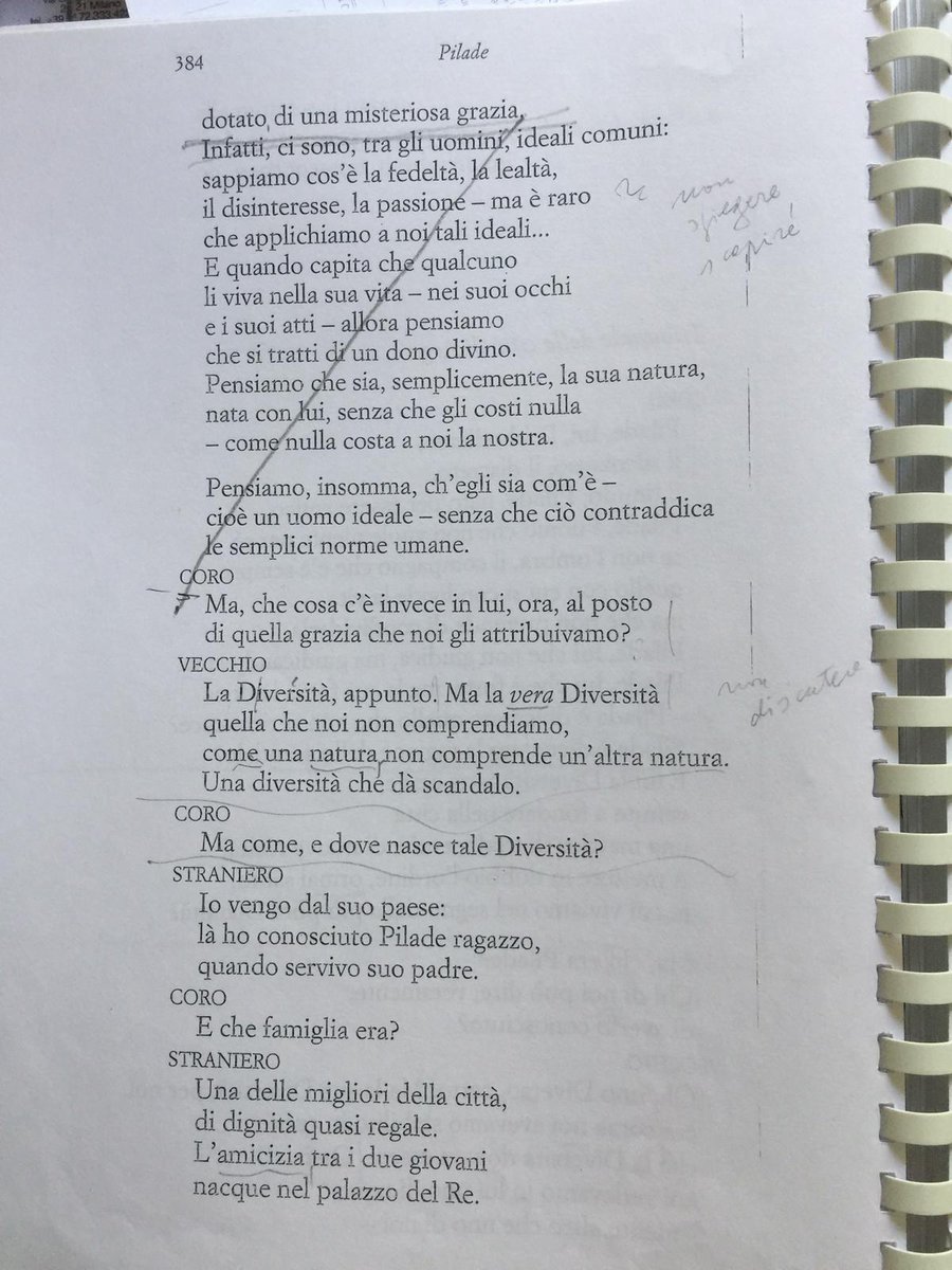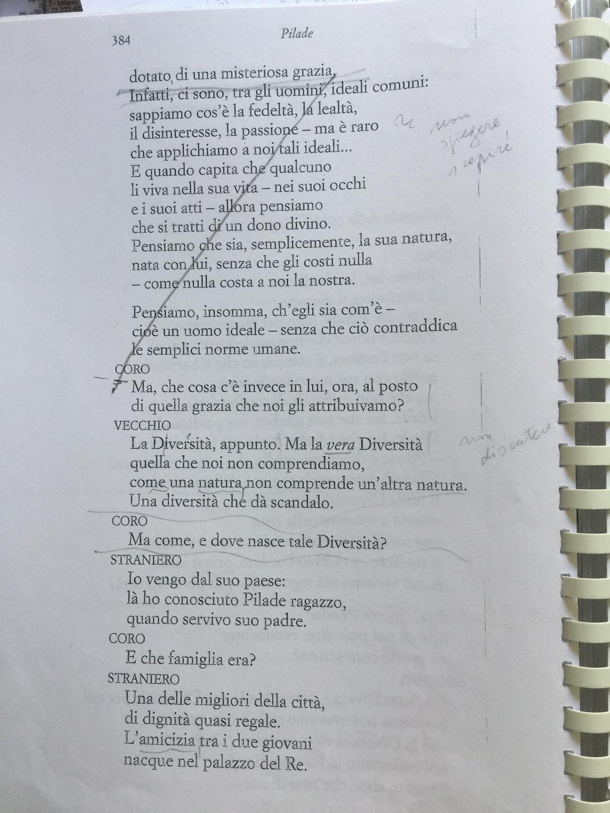 Pagina del copione Pilade con gli appunti di Luca Ronconi