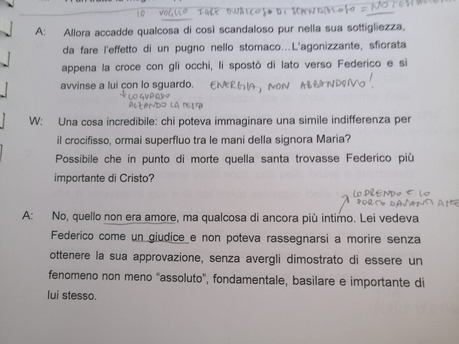Pagina del copione Pornografia con gli appunti di Valentina Picello