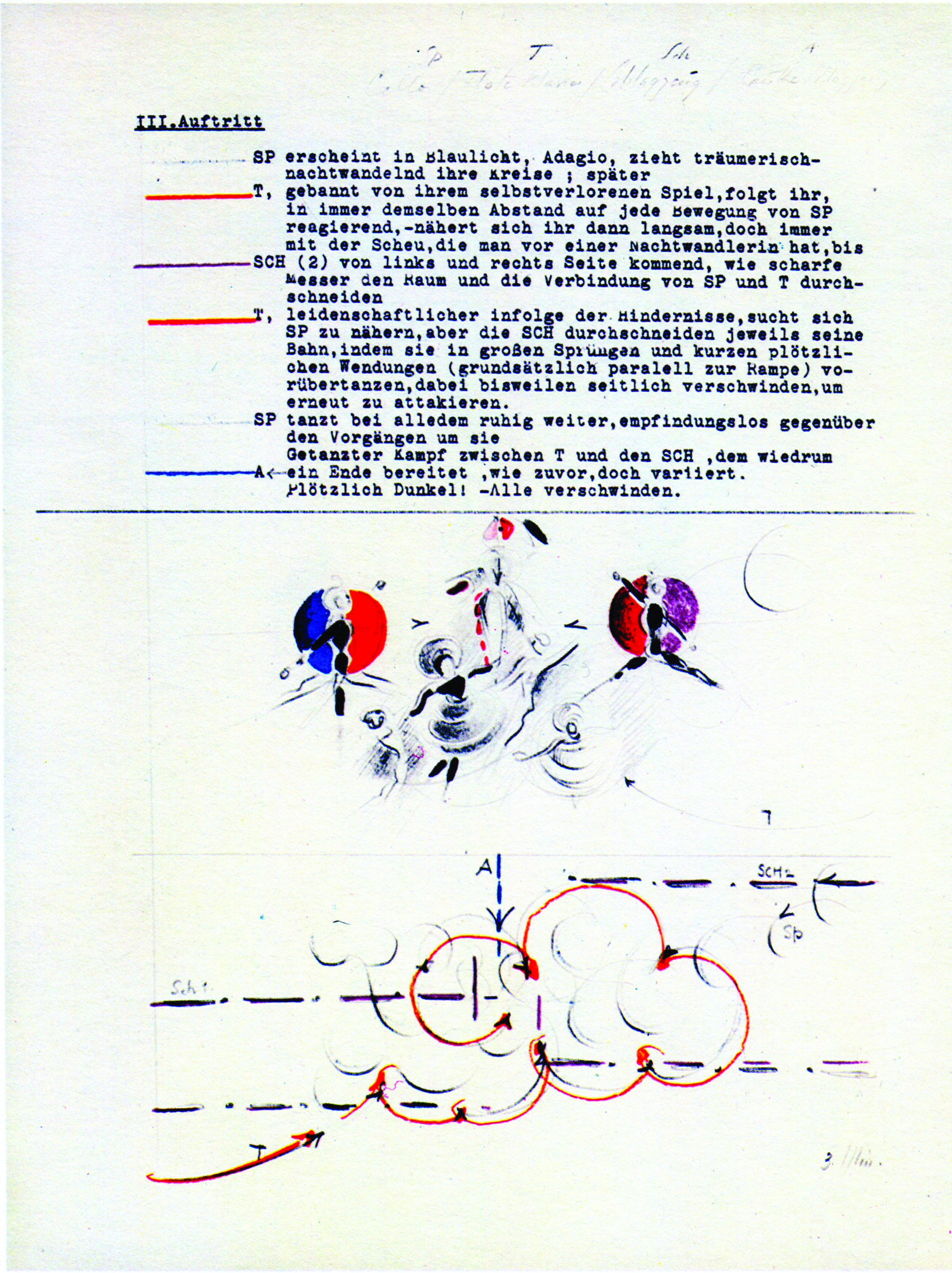 Balletto triadico. Versione per il varietà, 1936 Fogli 1-6. Matita e matita colorata. Proprietà Teatro Oskar Schlemmer (Collezione UJS) [Cat. N. 94 a-b-c-d-e-f-g]