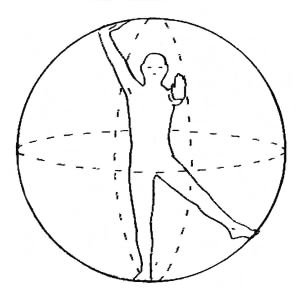 Il corpo umano inscritto nella cinesfera o sfera del movimento, la cui dimensione è data dall’estensione massima degli arti in ogni possibile direzione.