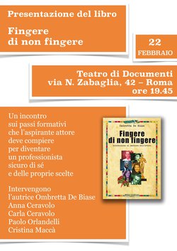 Sabato 22 febbraio a Roma, Ombretta De Biase, insieme Anna Ceravolo, Paolo Orlandelli, Cristina Maccà presenta il suo Fingere di non fingere. Al termine dell'incontro bicchierata, sfizi e saluti.